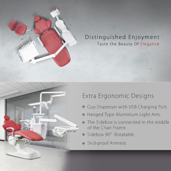 The CINGOL X5 Integral Dental Unit is a mid-to-high-end dental chair designed for efficiency, comfort, and modern infection control. It integrates advanced functionality with ergonomic design, ensuring both dentist convenience and patient comfort.